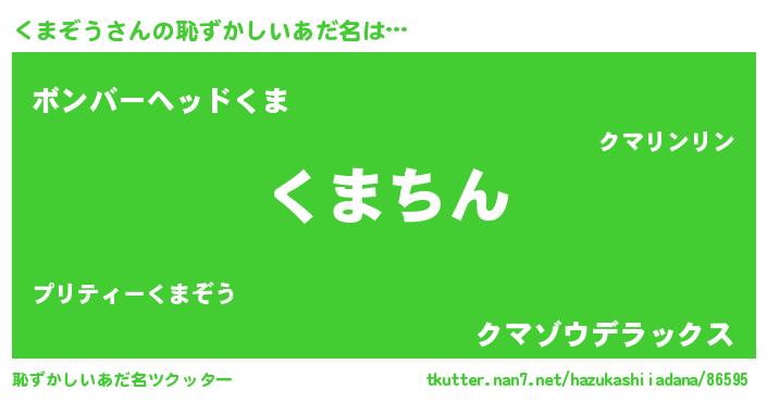 | ヘコむあだ名 | 『くまぞう(震え声)』『くまぷりん』 |