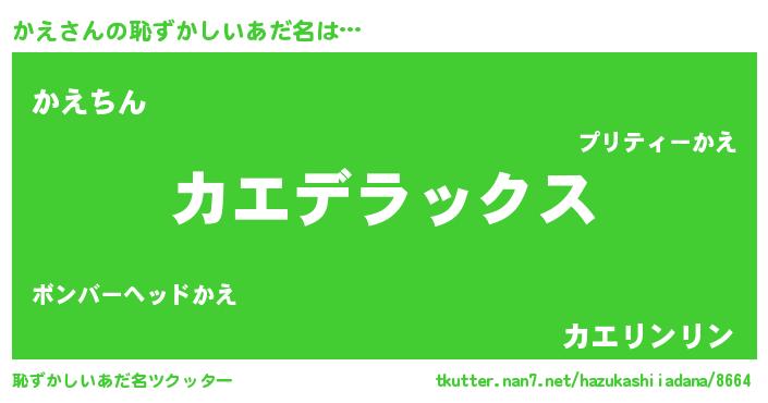 | 意味不明あだ名 | 『自称かえ』『永久保存かえ』 |