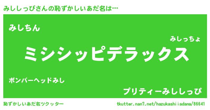 | 意味不明あだ名 | 『自称みししっぴ』『永久保存みししっぴ』 |