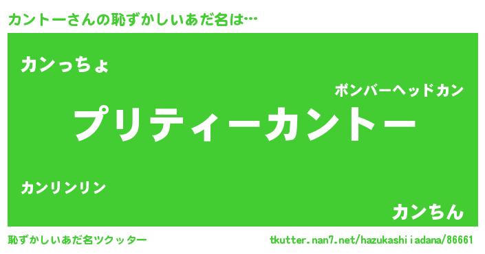 | 意味不明あだ名 | 『ペロリンカントー』『永久保存カントー』 |