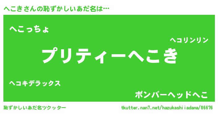 | ヘコむあだ名 | 『へこふぇ~』『酢こんぶ』『へこを』 |
