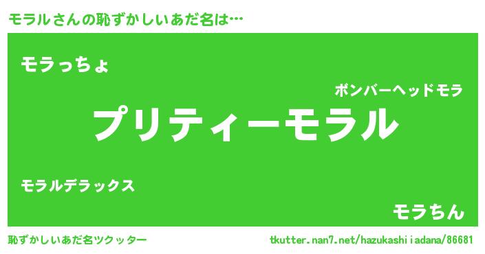 | 男性向けラノベタイトル風あだ名 | 『緋弾のモラル』『魔弾の王とモラル』 |