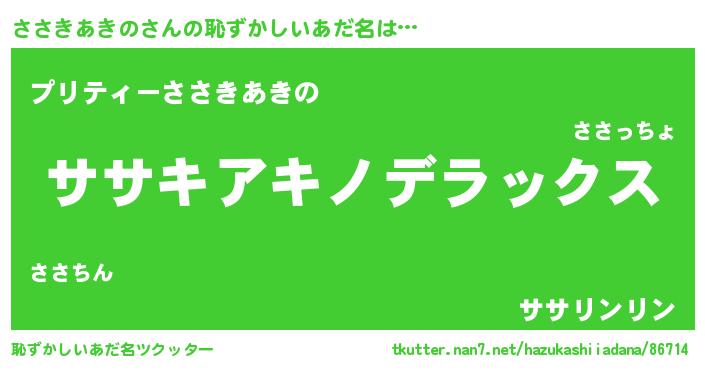| 肩書あだ名 | 『ささきあきの総統』『ささきあきの大佐』 |