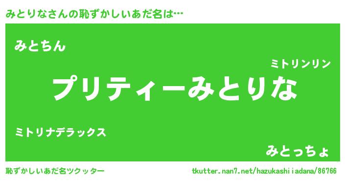 | ヘコむあだ名 | 『みとっふぃ~』『みとりな(笑)』 |