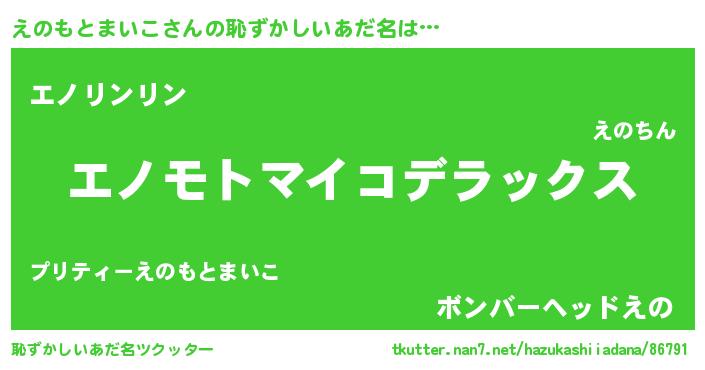 | 意味不明あだ名 | 『自称えのもとまいこ』 |