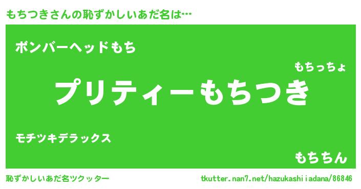 | 男性向けラノベタイトル風あだ名 | 『魔弾の王ともちつき』『もちつきの憂鬱』 |
