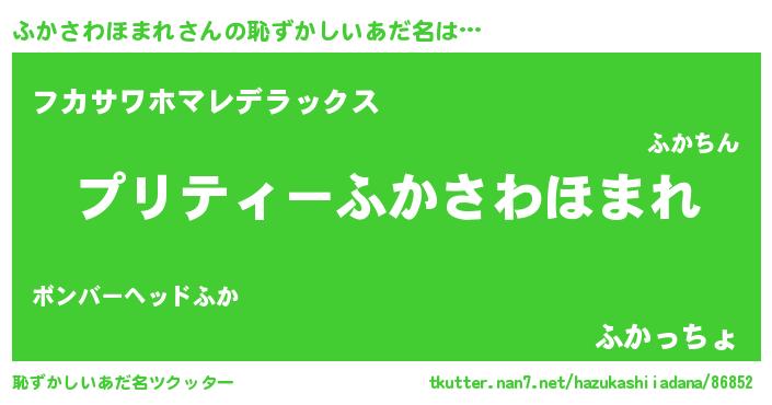 | 男性向けラノベタイトル風あだ名 | 『フカサワホマレアートオンライン』 |