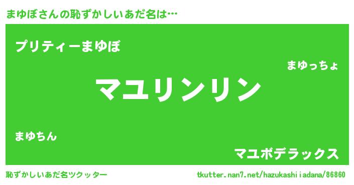 | ヒーロー風カッコイイあだ名 | 『魔戒騎士マユ』『スーパーマユボ』 |