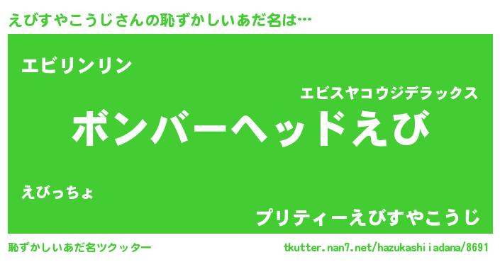 | 欧米人風あだ名 | 『えびすやこうじ・ステッグマイヤー』 |