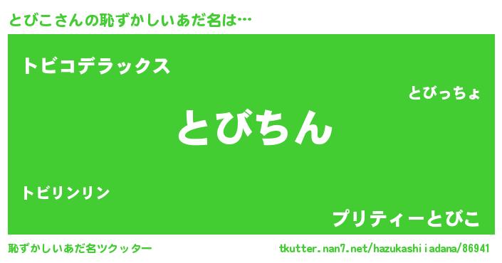 | 意味不明あだ名 | 『永久保存とびこ』『自称とびこ』 |