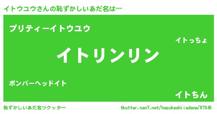 | 男性向けラノベタイトル風あだ名 | 『イトウユウの嫁は女の子じゃないと思った?』 |