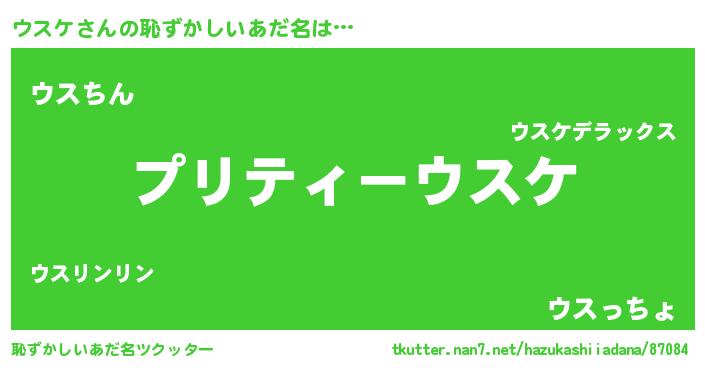 | 男性向けラノベタイトル風あだ名 | 『ウスケの憂鬱』『緋弾のウスケ』 |