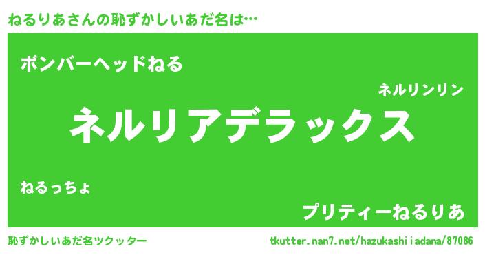 | 肩書あだ名 | 『ねるりあ少佐』『ねるりあ閣下』 |