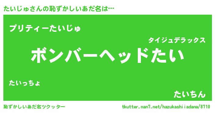 | ヘコむあだ名 | 『たいっふぃ~』『たいじゅ(笑)』 |