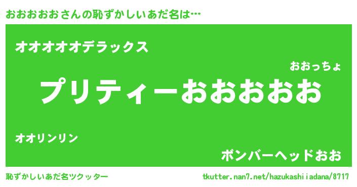 | 男性向けラノベタイトル風あだ名 | 『オオオオオアートオンライン』 |