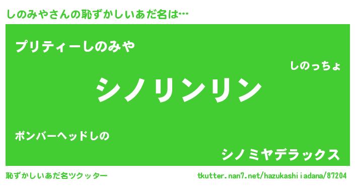| 意味不明あだ名 | 『とにかく怪しいしのみや』 |