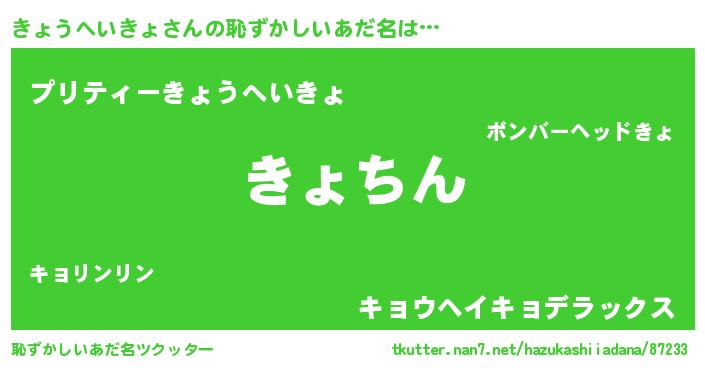 | ヘコむあだ名 | 『きょうへいきょ(笑)』『きょっふぃ~』 |