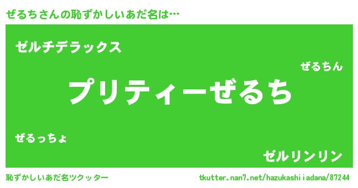 | 欧米人風あだ名 | 『アンジェラ・ぜるち』『マイケルぜるち』 |
