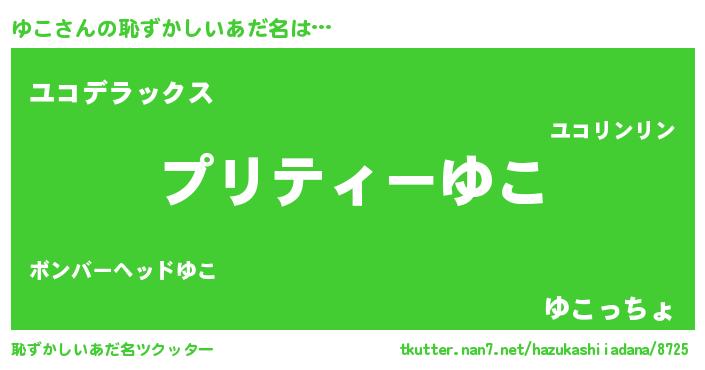 | ヘコむあだ名 | 『ゆこにー』『豆乳』『ゆこっぺ』 |