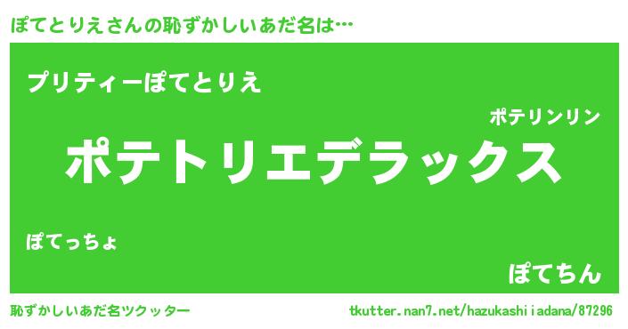| 意味不明あだ名 | 『自称ぽてとりえ』『ペロリンぽてとりえ』 |