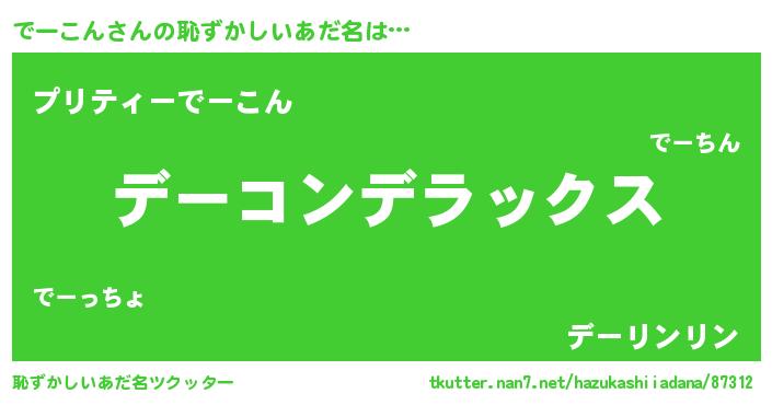 | 意味不明あだ名 | 『自称でーこん』『ペロリンでーこん』 |