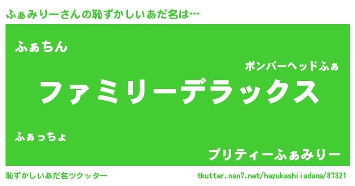 | ヘコむあだ名 | 『ふぁみりー(笑)』『ふぁにゅー』 |