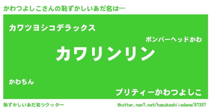 | 男性向けラノベタイトル風あだ名 | 『かわつよしこの嫁は女の子じゃないと思った?』 |