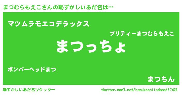 | 意味不明あだ名 | 『住所不定無職まつむらもえこ(89歳)』 |