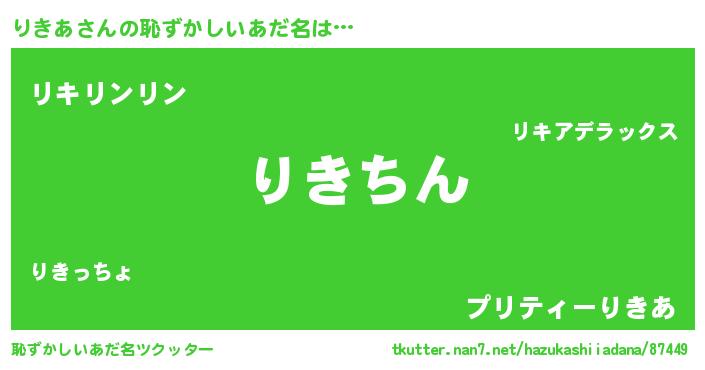 | ヘコむあだ名 | 『りきあ(爆)』『りきっ子』 |