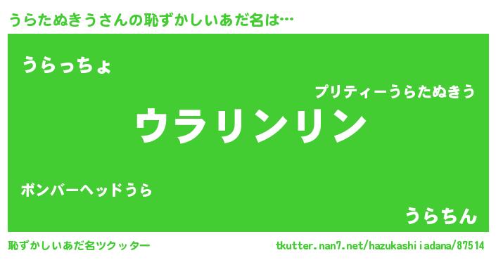 | 伝説のあだ名 | 『孤高の遊び人うらたぬきう』 |