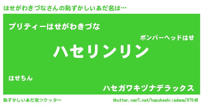 | ヒーロー風カッコイイあだ名 | 『天弓騎士ハセ』『ネオハセガワキヅナ』 |