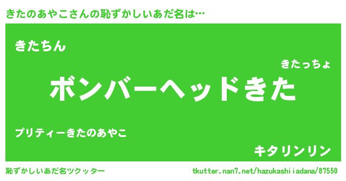 | ヘコむあだ名 | 『きたのあやこ(震え声)』『きた太郎』 |