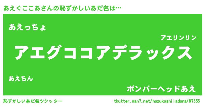 | 意味不明あだ名 | 『自称あえぐここあ』 |