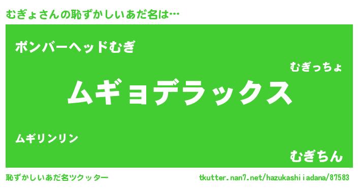 | 男性向けラノベタイトル風あだ名 | 『Re:むぎょから始める異世界生活』 |