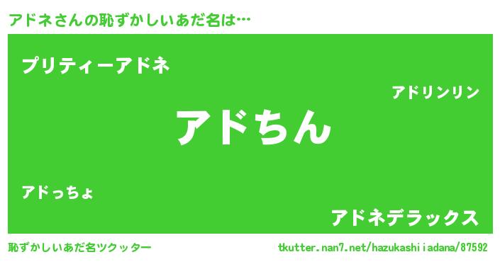 | ヘコむあだ名 | 『アドネ(小並感)』『アドにゅー』 |