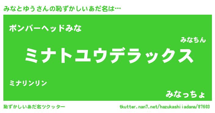 | ヘコむあだ名 | 『なまこ酢』『みなとゆう(笑)』 |