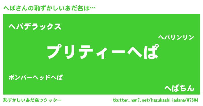 | 意味不明あだ名 | 『ペロリンへぱ』『自称へぱ』 |