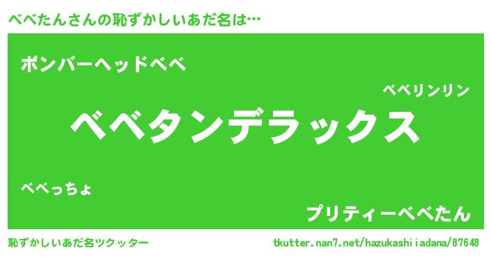 | ヒーロー風カッコイイあだ名 | 『ウルトラ戦士ベベタン』『仮面ベベダー』 |