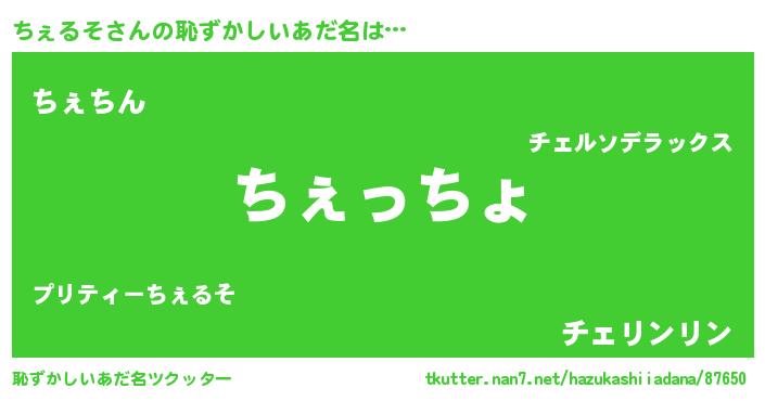| ヘコむあだ名 | 『豆乳』『ちぇるそ(爆)』『ちぇを』 |