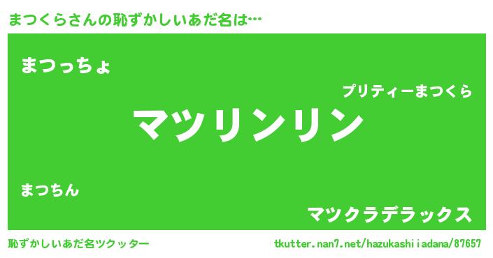 | ポケモン風あだ名 | 『ヒマツクラ』『マーツイ』 |