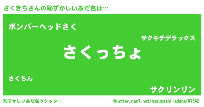 | 男性向けラノベタイトル風あだ名 | 『サクキチスレイヤー』 |