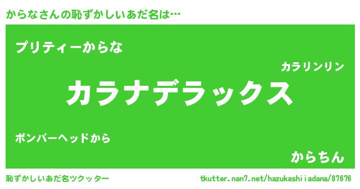 | ヒーロー風カッコイイあだ名 | 『ウルトラ戦士カラナ』『スーパーカラナ』 |