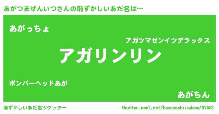 | 胡散臭い通販商品みたいなあだ名 | 『信頼と実績のペンダント…その名も「あがつまぜんいつ」』 |