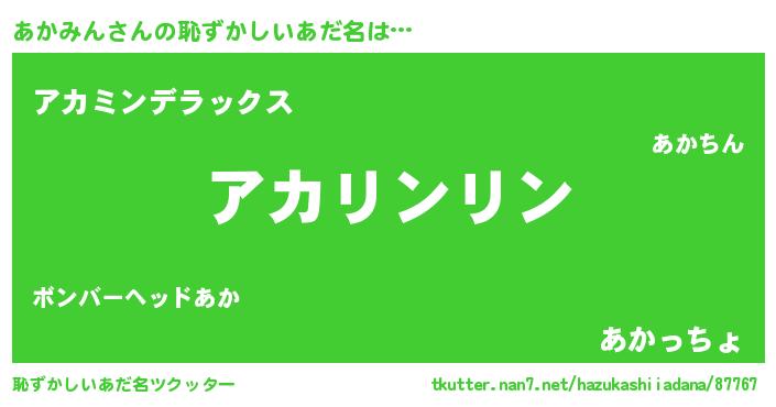| ヒーロー風カッコイイあだ名 | 『魔戒騎士アカ』『サイバー戦士アカミン』 |