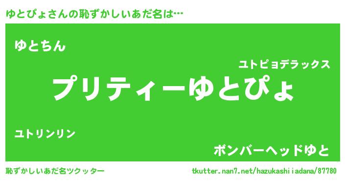 | 男性向けラノベタイトル風あだ名 | 『ゆとぴょの憂鬱』『魔弾の王とゆとぴょ』 |