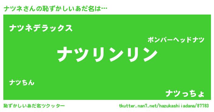| ヒーロー風カッコイイあだ名 | 『黄金騎士ナツ』『究極戦士ナツネ』 |