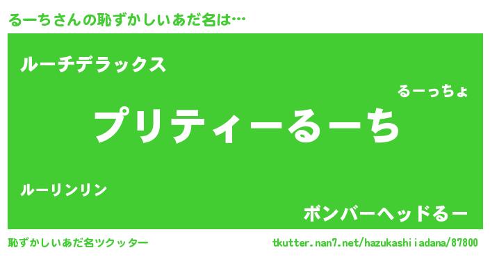 | 男性向けラノベタイトル風あだ名 | 『緋弾のルーチ』『るーちの憂鬱』 |