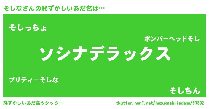 | 意味不明あだ名 | 『自称そしな』『もやし科そしな属』 |