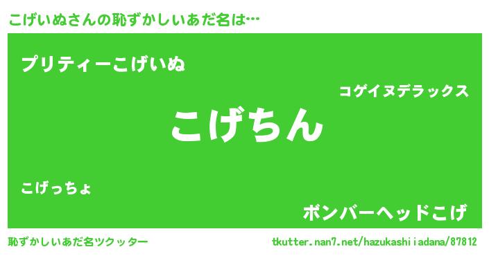 | ヘコむあだ名 | 『こげいぬ(遠い目)』『こげもー』 |