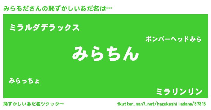 | ヘコむあだ名 | 『みらるだ(笑)』『みらっ子』 |